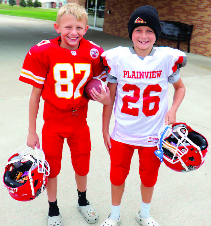 It was a practice run for some ghosts and goblins at Immanuel Lutheran Church as it held its Trunk or Treat in the parking lot on Sunday, Oct. 26. The weather may have been cool and windy, but the kids didn’t seem to notice as they went through the line of trunks for their treats. At above left, the Marks kids — Scarlett, Amberlin, Henley and Beckett, as three cows and a farmer— were in charge of handing out treats. Above, Elizabeth and Scarlett Mansfield helped hand out treats by their vehicle. At left, Braxton Stelling and Carter Gansebom sported their football uniforms as their costumes. As of Monday evening, the forecast for Halloween calls for a chilly 47° for a high that day, and 30° that night. Check out more pictures from Sunday’s trunk or treat on Page 10.