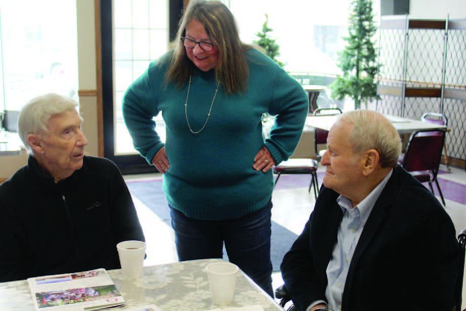 Doc Johnson (far right) speaks with Dan Garner and Terrie Kumm