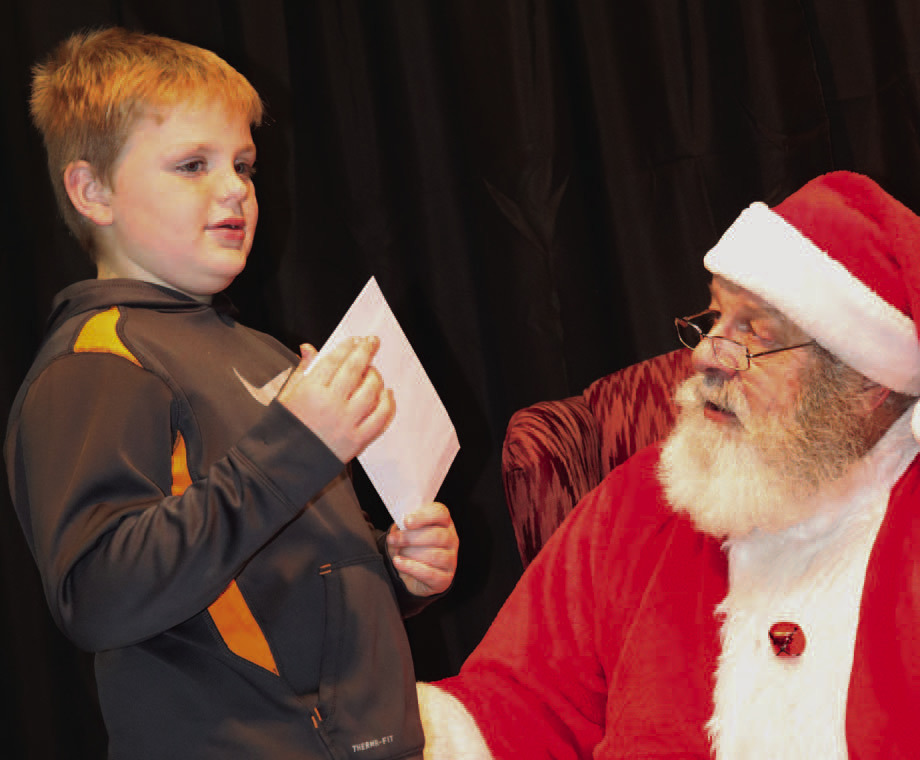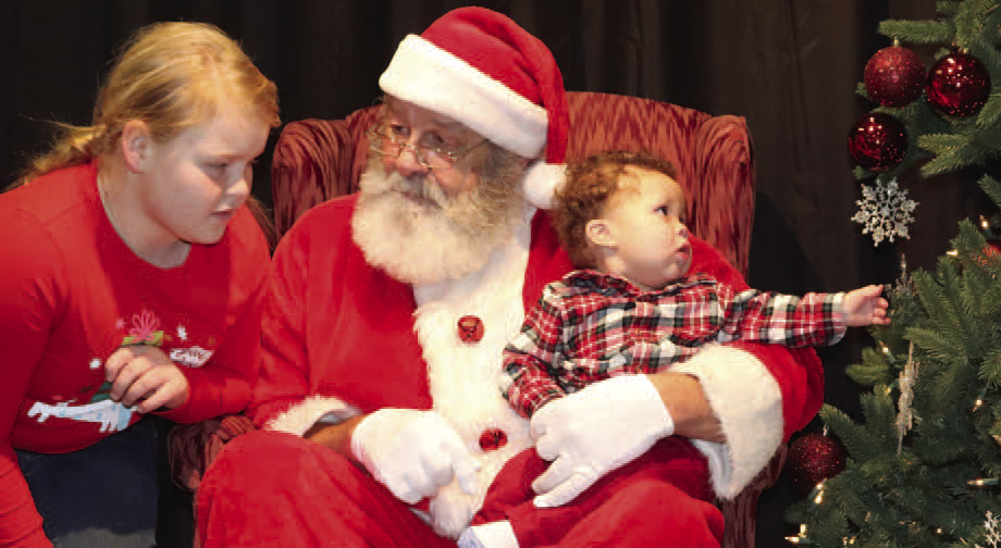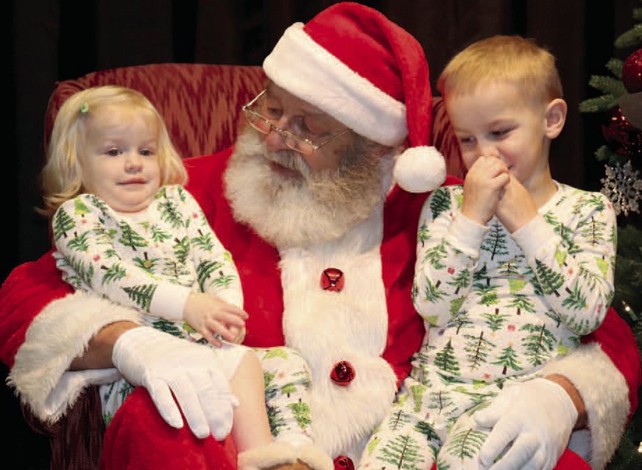 Clara Steffen tells Santa what she wants for Christmas, while little Elijah is only interested in the sparkly Christmas decorations