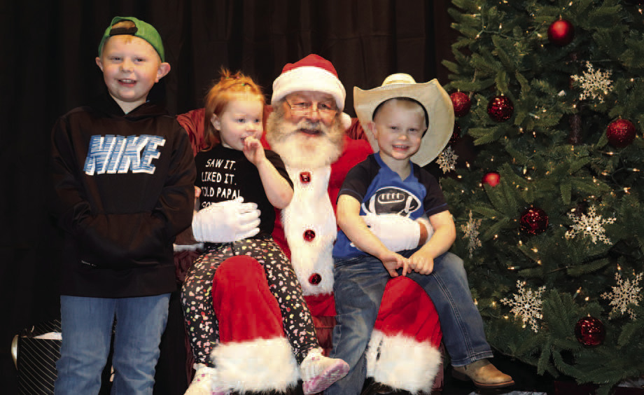 Bentley, Zayla and cowboy Beckett Maertins pose for a picture with Santa