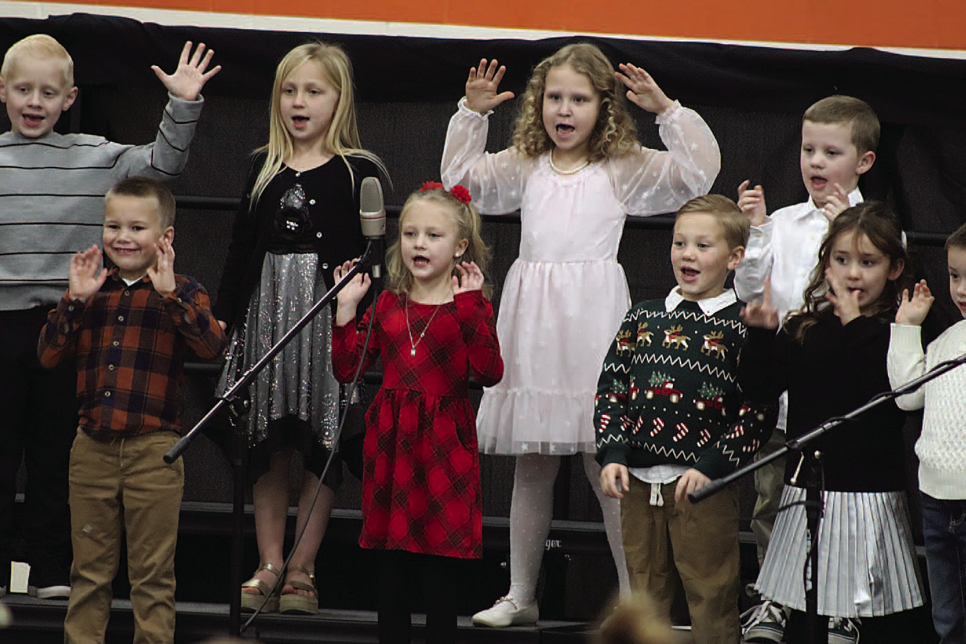 The kindergarten students then began the vocal part of the program, singing “Snowmen Can’t March” and "Pictures With Santa." The first grad ers joined them for the next song, “A Little Bit Holiday.”