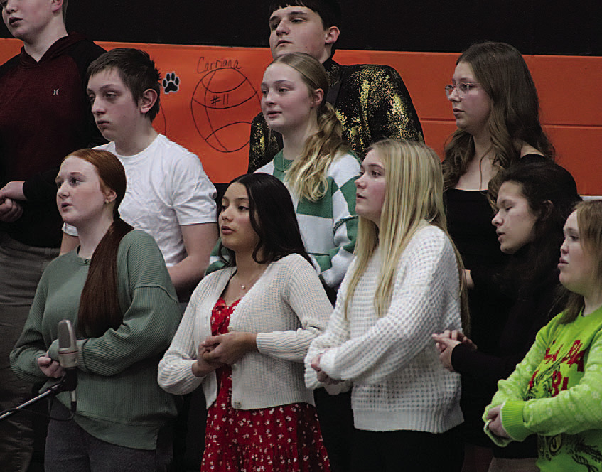 After a short break, the junior high and high school students presented their program. The junior high started CONCERTS ARE HIGH TECH, LEAD SING-A-LONG things off with “Let It Snow! Let It Snow! Let It Snow!,” “Believe” and “Rockin’ Around The Christmas Tree.” The senior high mixed chorus then sang “I’ll Be Home For Christmas,” “Lirum, Lirum” and “Holiday Rock.”