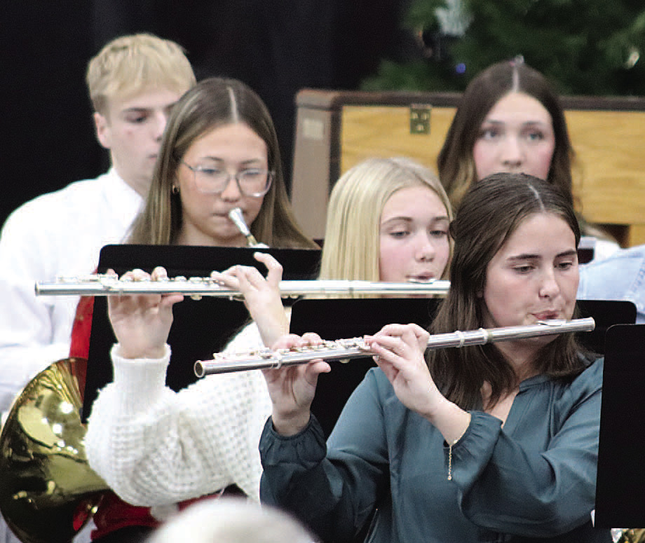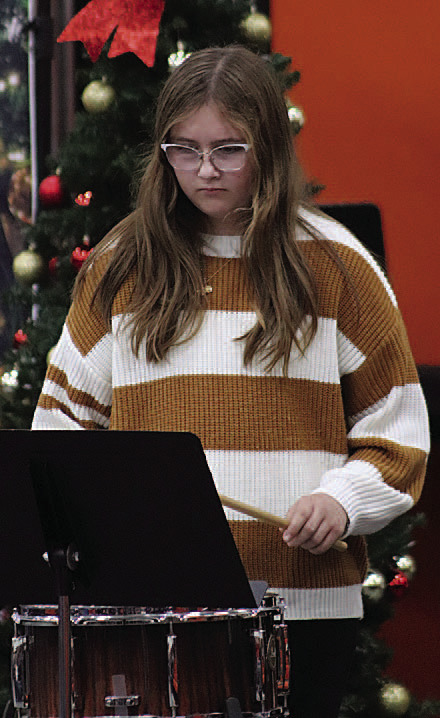 The junior high concert band played three songs, “Bell Carol Rock,” “Joeux Noel” and “Deck The Halls With Rock ‘N’ Roll,” and the senior high band performed three as well: “The Nightmare Before Christmas,” “White Christmas” and “Christmas Exultations.”
