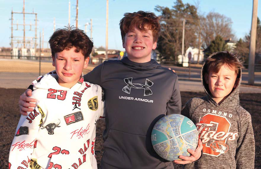 Kamden Riley, Toby Koehler and Jaxson (above) played a wild game of basketball on the Osmond Community School playground last Thursday when the weather was beautiful out. The next day, the weather once again turned colder, and remained that way until Tuesday, when the temperature finally climbed back up to 50°. Except for a temperature of 45 on Friday with a chance of showers, the rest of this week will range in the 50s and 60s, climbing to a high in the 70s next Monday, perfect for outdoor activities.
