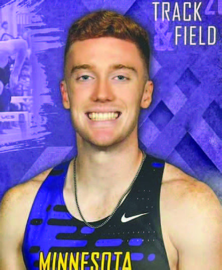 MANKATO, MN — Keaton Wattier, a senior at Minnesota State University in Mankato, MN, started his indoor track season by breaking the all-time pentathlon testing record by 49 points. He scored 392 points, beating out the previous record of 343 held by Dylan Gross. Keaton beat the all-time standing broad jump record for sprinters/ hurdlers by jumping 11 ft., 6.5 in. He also broke the all-time forward and backward shot put throw by throwing 54 ft., 9.1 in. forward and 56 ft., 3.25 in. backwards. He had a 30 F.A.T. of 3.91 seconds and a standing triple jump of 31 ft., 3.5 in. At the Maverick Open Indoor meet on Feb. 20, he got first place in the 60 meter hurdles with a personal best time of 7.87, setting a meet record with that time, and also earning himself a NSIC Athlete of the Week award and placing him the fifth fastest time in NCAA Di - vision II. On Feb. 28, he got first place