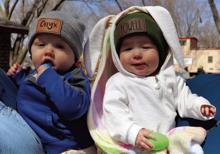 In picture at left, Onyx Hader and Powell Koehler enjoy their first Easter egg hunt